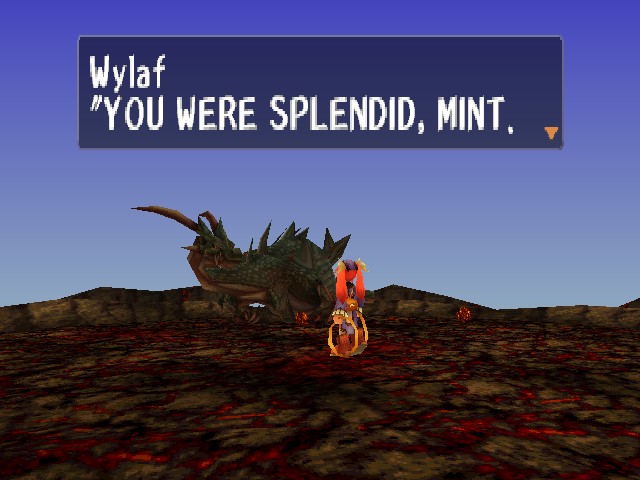 Бьем его только когда он приземляется, можно бить магией Blue Icicle, если манны нет, то бьем простыми атаками. Когда жизнь у Вилафа будет на половине, то бой закончится.