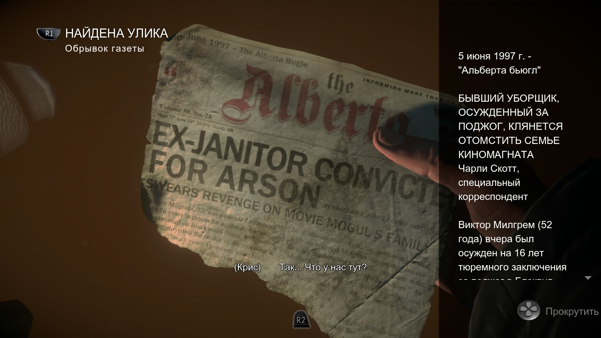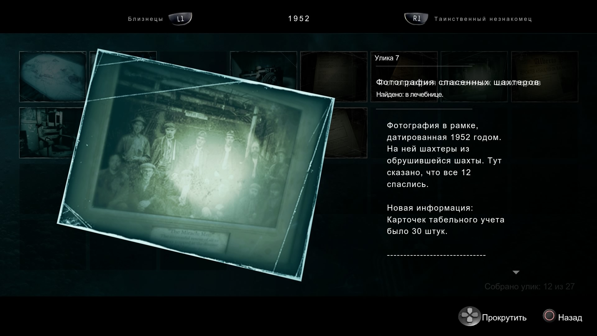 - Улики шестая и последняя ФИШКА ВЫБОРА в игре. В игре постоянно находишь разные предметы: переворачиваешь пыльную разбитую картину на земле и видишь там в рамке фотографию-улику, смотришь на письмо, переворачиваешь его и замечаешь приписку ручкой (улика), сравниваешь разные окурки с найденной позже сигаретой и находишь, что это одна и та же марка табака. И так далее. Самое интересное, что улики постоянно дополняются новой информацией, они «незавершённые». Каждая одинокая улика в одном деле может неожиданно послужить материалом и основой для опровержения другой улики и нахождения уже ТРЕТЬЕЙ улики. Всё взаимосвязано. Я называю такие постоянно меняющиеся улики словом «мультиулики». При обновлении информации в мультиулике появляются слова «Новая информация:» и далее следуют новые факты и размышления.