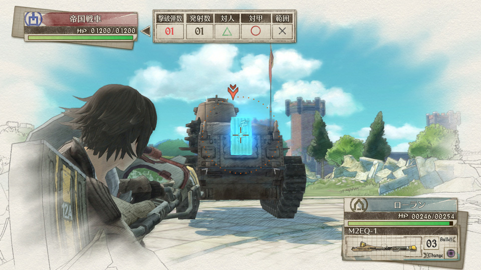 У танка существует три вида атак: бронебойные снаряды, осколочно-фугасные снаряды и пулемет.