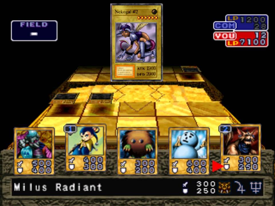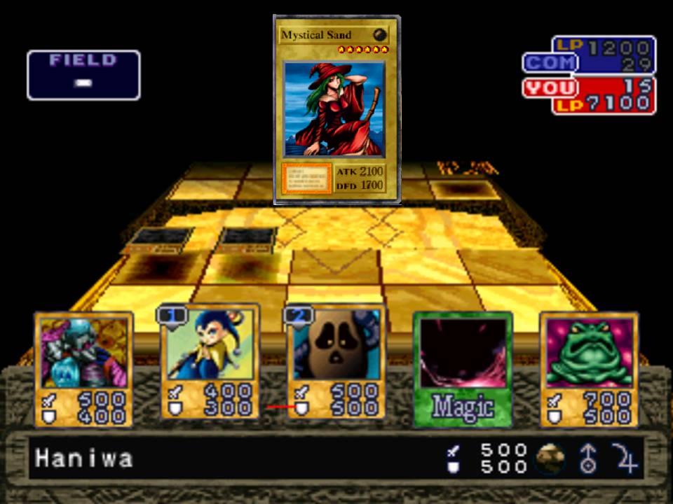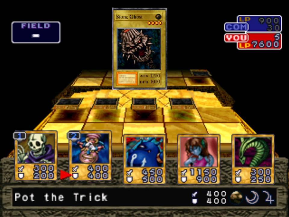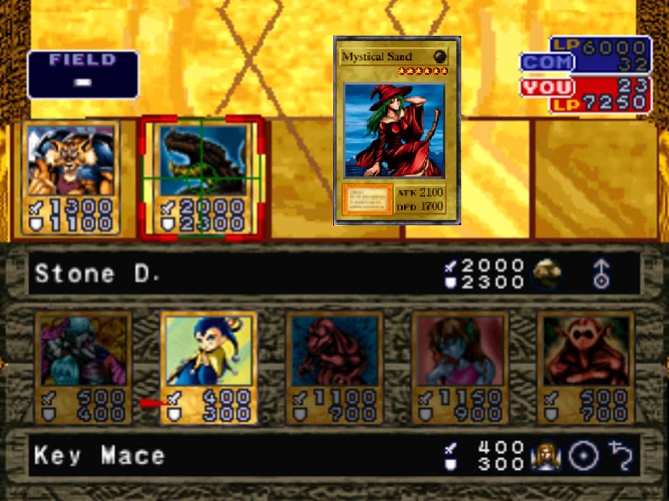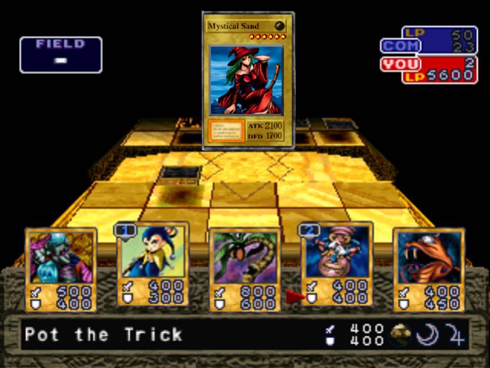 А также можно соединять монстров, которые уже находятся на поле, с монстрами, которые у вашего игрока в руках. Вам всего лишь надо выбрать карту с руки и положить на ту карту, которая находится на поле, тем самым вы сможете объединить их. Но будьте осторожны, так как если вы не знаете, какого монстра можно объединить с монстром на поле, то вы можете потерять монстра, находящегося на поле, заменив его на монстра с меньшей атакой. Тем самым делая шаг ближе к поражению.