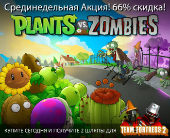 В честь 2-х летней годовщины с момента выхода Plants vs. Zombies, вы можете купить её в Steam со скидкой 66%! Предложение действует до 4-х вечера по тихоокеанскому времени, спешите!