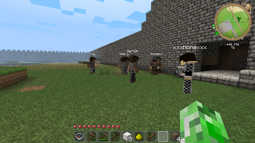Ну и как обычно, после стройки игроков ожидал сюрприз в виде жестокой баталии прямо на главной площади с применением холодного оружия и динамита.