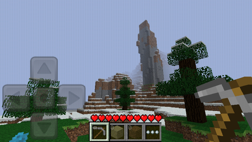 Последние секунды обработки мира, быстрая прогрузка местности и попадаем в самый настоящий, ни в чем не урезанный Майнкрафт. Те же цвета, те же блоки, тот же мир. По графике (ха-ха) мобильная версия ничем не уступает «старшему брату». Ложка дегтя: пока доступно только ограниченное кол-во местности.