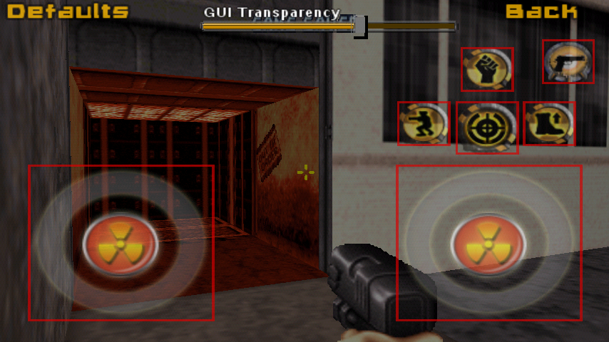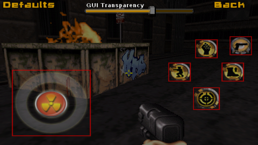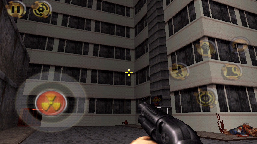 Так как игра была портирована с компьютера и управление в ней подразумевалось соответствующее, то направлять Дюка слегка не удобно стики слишком резки и быстры. Благо все это можно исправить в настройках, а имея шаманский бубен и привязать джойстик (этот момент я освещу в одном из следующих выпусков). Если элементы управления мешают обзору, их можно сделать более прозрачными вплоть до полной невидимости .