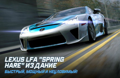 Need for Speed: World снова приготовила подарок к выходным и готова подарить весеннее настроение с новой машинкой Lexus LFA 'Spring Hare' Edition. Машинку можно протестировать сегодня совершенно бесплатно.