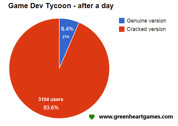 Кроме того, что в лицензионной версии, что в пиратской, имеется небольшая часть кода, которая посылает информацию на сервера разработчиков. В выложенной самой студией на трекере игре имеется специальный ключ, который указывает на то, что игра пиратская, а официальные копии имеют уникальные ключи, указывающие на лицензионную версию. Результаты за день оказались неутешительными: судя по графику и имеющимся у Greenheart цифрам, игру скачали более 93% игравших.