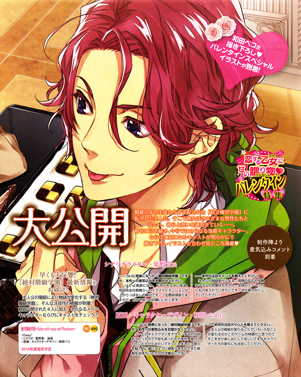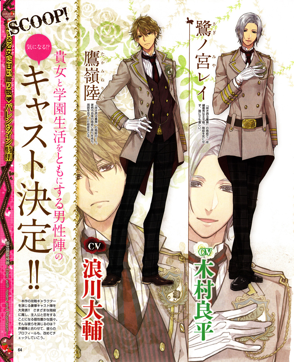 Грядущая новелла отоме-студии Daisy2 просто радует глаз. По сравнению с предыдущими их работами рисовка улучшилась в разы. Игра планируется к выходу на персональные компьютеры уже в этом году, а пока немного сканов из мартовского номера японского журнала Dengeki Girl's Style: