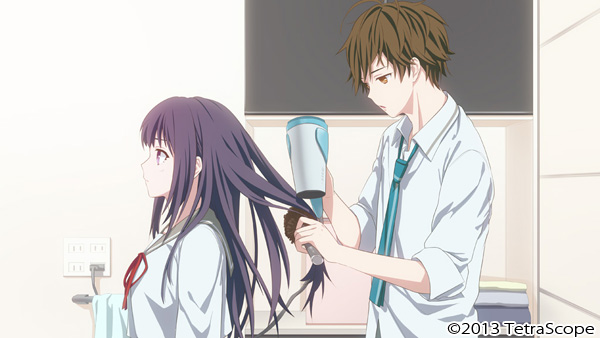 FLAT решили отдохнуть от своих проектов про школьников, вынужденных выживать в некой таинственной игре, и сделать лёгкую романтическую новеллу, посвящённую проблемам отношений. Hikoukigumo no Mukougawa должна была выйти совсем скоро, в конце февраля, но дата её релиза перенесена теперь на 28 марта.