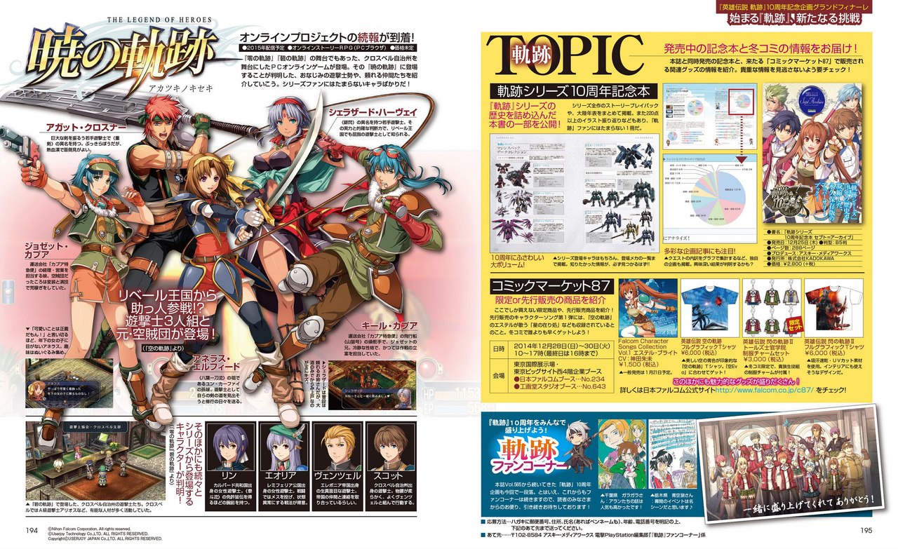 Sora no Kiseki FC Evolution выйдет в Японии уже в 2015 году эксклюзивно на PS Vita. В игре будет высокое разрешение, перерисовка персонажей, полная озвучка, обновленное музыкальное сопровождение.