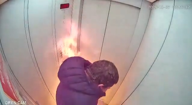 Если вы играли в игру, то помните персонажа, который поджигал сам себя. Выложенный (и ныне удаленный) ролик как раз был файлом съемки этого момента в фильме, на котором видно как каскадёр поджигает себя в лифте. Ролика нет, но сохранились скриншоты. Они довольно жуткие (как никак рейтинг 18+ у фильма), спрячу под спойлер.